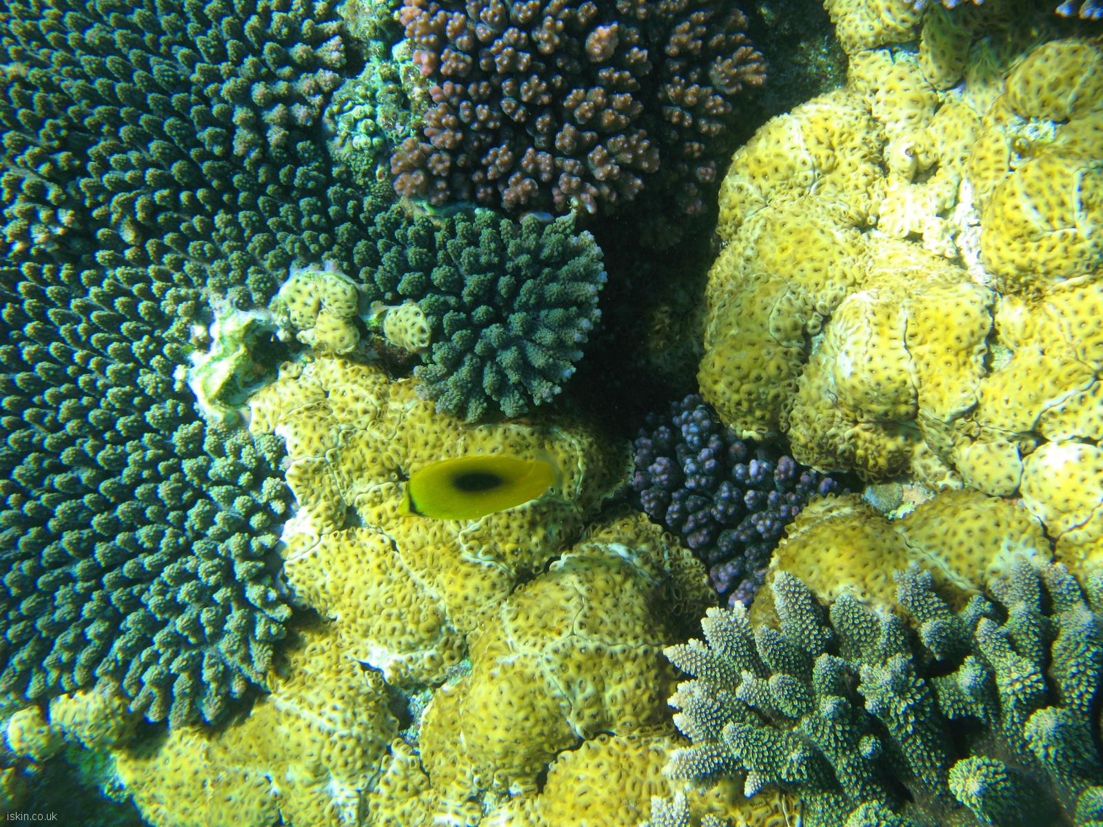 A fish swimming against colourful corals on the barrier reef, queensland, australia