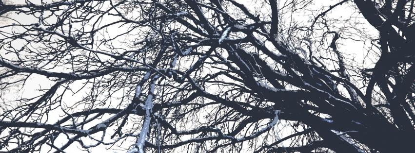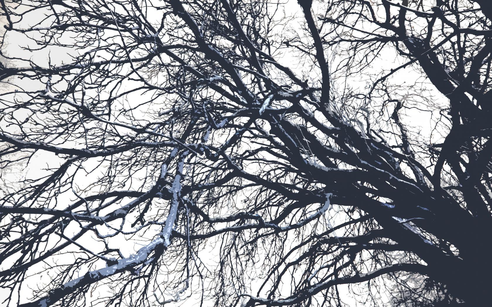 a leafless tree presented with a graphic illustration effect in blue and charcoal colours